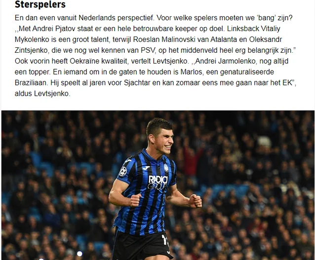 Крім того, провів років 15 під керівництвом таких тренерів, як Лобановський, Анчелотті, Моурінью – практично ідеальний досвід навчання з тактичної точки зору". Портал виділяє двох найкращих гравців збірної у відборі Євро-2020 – Зінченко і Маліновський добре відомі, адже грали в країнах Бенілюксу. Руслана хвалять за універсальність, називають хижаком і порівнюють з хавбеком Барселони Френкі Де Йонгом, а Олександру пригадують виступи за ПСВ на позиції десятки, хоча зараз і в Манчестер Сіті, і в національній команді він виконує дещо інші, навіть вагоміші ролі.