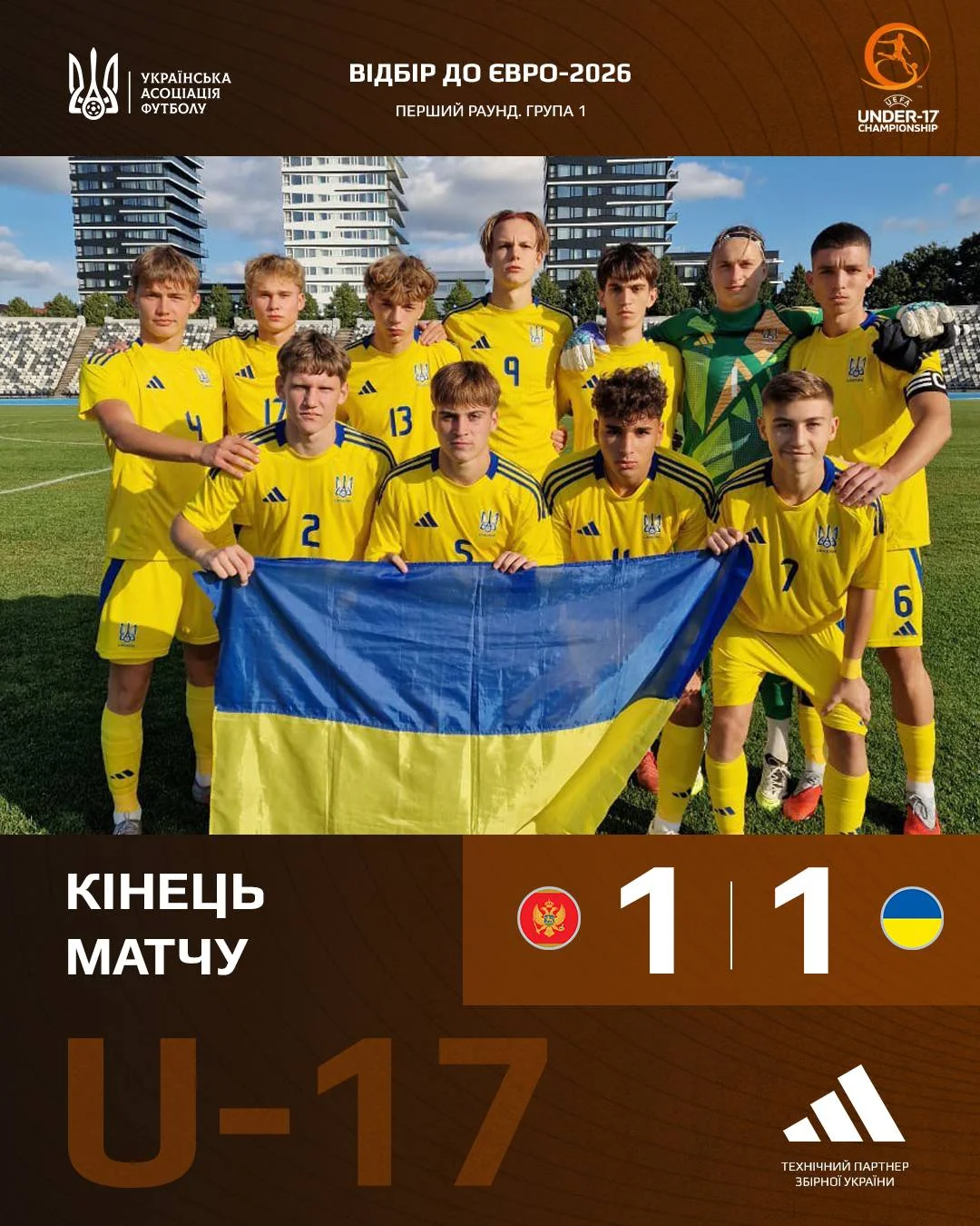 Черногория и Украина разошлись миром (1:1) в первом туре квалификации чемпионата Европы U-17. Счет и обзор матча – на "Футбол 24".