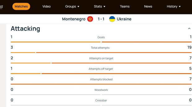 Какое же наслаждение от просмотра игры этого низкорослого и шустренького Дзюринца. Принял спиной под давлением, развернулся, прошел дальше на дриблинге троих, создал момент для Гурама, который тоже положил на газон оппонента, но перед ним вырос другой блокировщик. И так весь матч! Статистика ударов показательна – 3:19. Даже по попаданиям 2:7 в пользу Украины. Массовые судороги черногорцев после свистка неслучайны. В нашей группе лидирует Италия, которая сокрушила Эстонию. Счет неприличный – 8:1, поэтому столь важно было сегодня по крайней мере не проиграть. Украина сыграет против Эстонии во втором туре 4 октября. Начало матча также в 15:30 по Киеву.