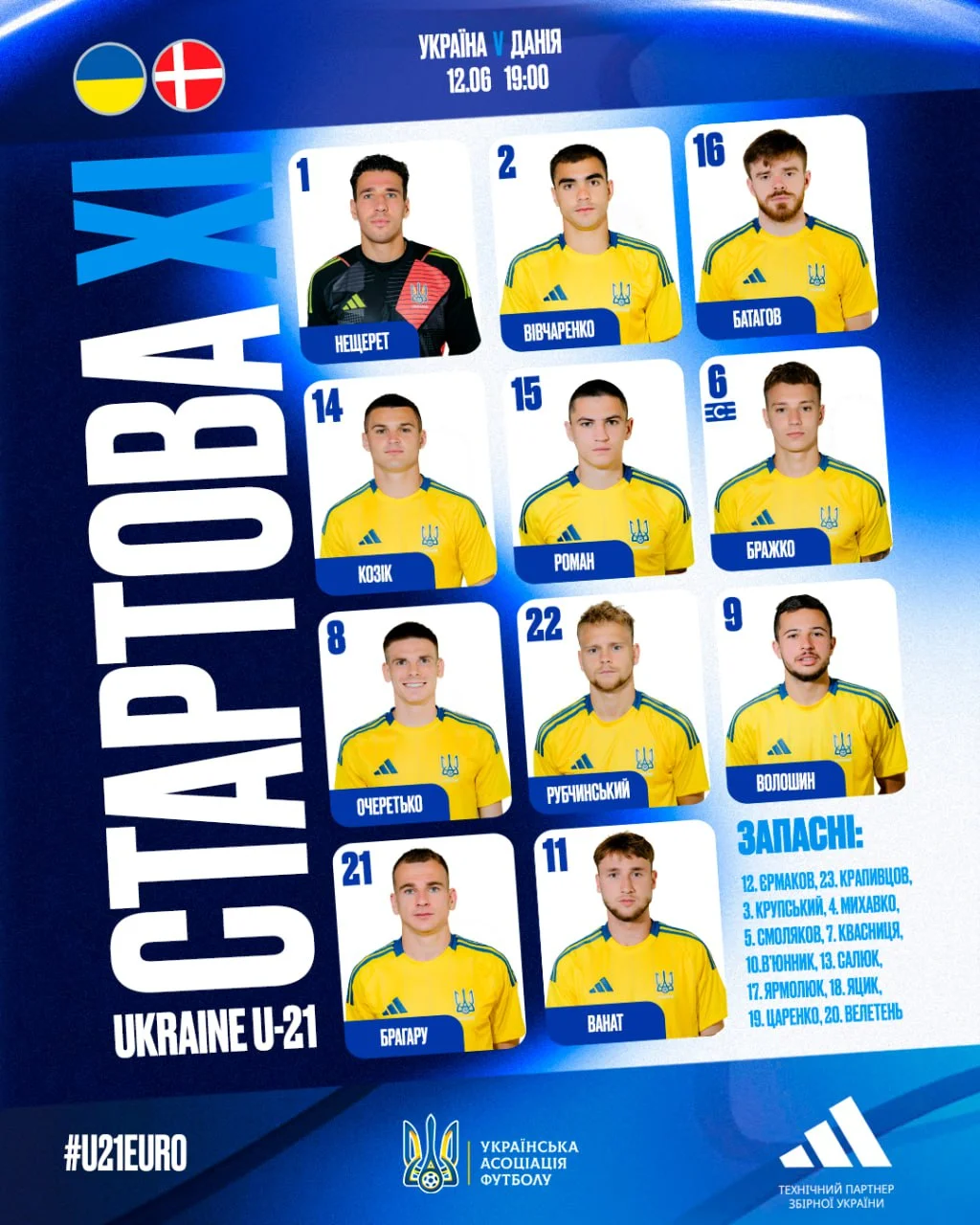Украина – Дания: стартовые составы и онлайн-трансляция матча Евро-2025 U-21