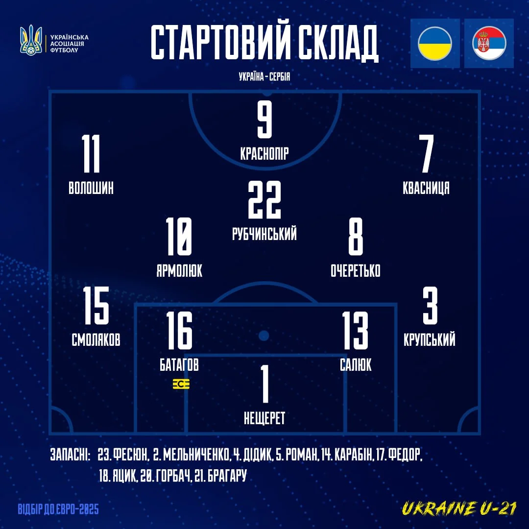 Украина U-21 – Сербия U-21: стартовые составы и бесплатная видеотрансляция матча отбора на Евро-2025
