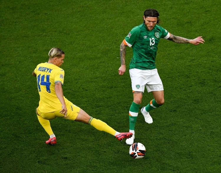 Как следствие, в первом тайме матч оказался хаотичным и не очень интересным. Когда появлялось пространство, Мудрик пытался убегать, но ничего существенного из его редких проходов команда не получила. Было много борьбы, лонгболов, мелких потерь и плохих пасов. Самый же опасный момент создали ирландцы – это Найт выстрелил с дальней дистанции под левую штангу. Лунин парировал.