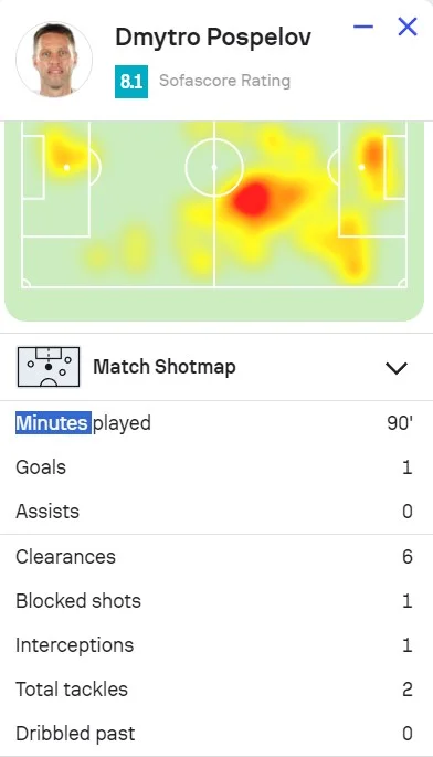 Следует добавить, что именно Дмитрия признал лучшим игроком матча статистический портал SofaScore, оценив в 8,1 балла. К голу Поспелов добавил аж 6 выносов мяча, 1 заблокированный удар и 1 перехват, 2 отбора, 3 из 3 выигранных воздушных дуэлей. Немного хуже ситуация и с борьбой на газоне – выигранных лишь 2 из 5 противостояний.