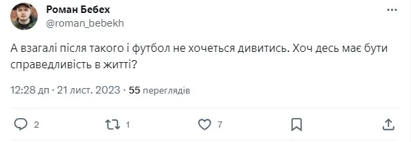 Бомбардир Роман Бебех доходить категоричного висновку, що після такого свинства відпадає бажання дивитися футбол.