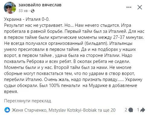 Агент, менеджер і експерт В'ячеслав Заховайло задоволений тим, що збірна не відсиджувалася в окопах.