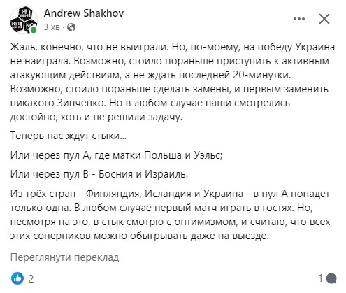 Оглядач Трибуни Олександр Сажко хвалив збірну України і безапеляційно впевнений у фолі проти Мудрика.