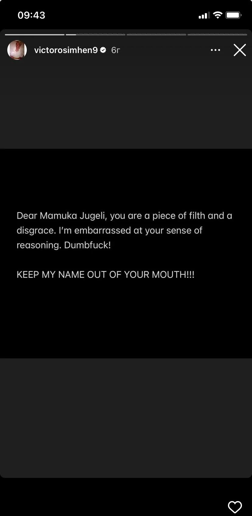 "Уважаемый Мамука Джугели, ты – кусок грязи и позора. Я шокирован твоим чувством причинно-следственных связей. Тупой уродец! Держи мое имя как можно дальше от своего рта", – написал нигериец в своем инстаграмме.