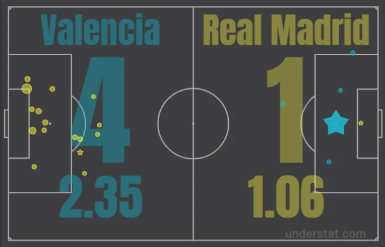 Поражение Реала оказалось забавным, учитывая содержание матча и финальную статистику. За 96 минут Валенсия, кроме трёх пенальти, имела всего четыре удара на 0,12 ожидаемых голов – и если попадание Ли Кан Ина в штангу с 25 метров выделялось, то все остальные эпизоды действительно отвечали мизерному xG.