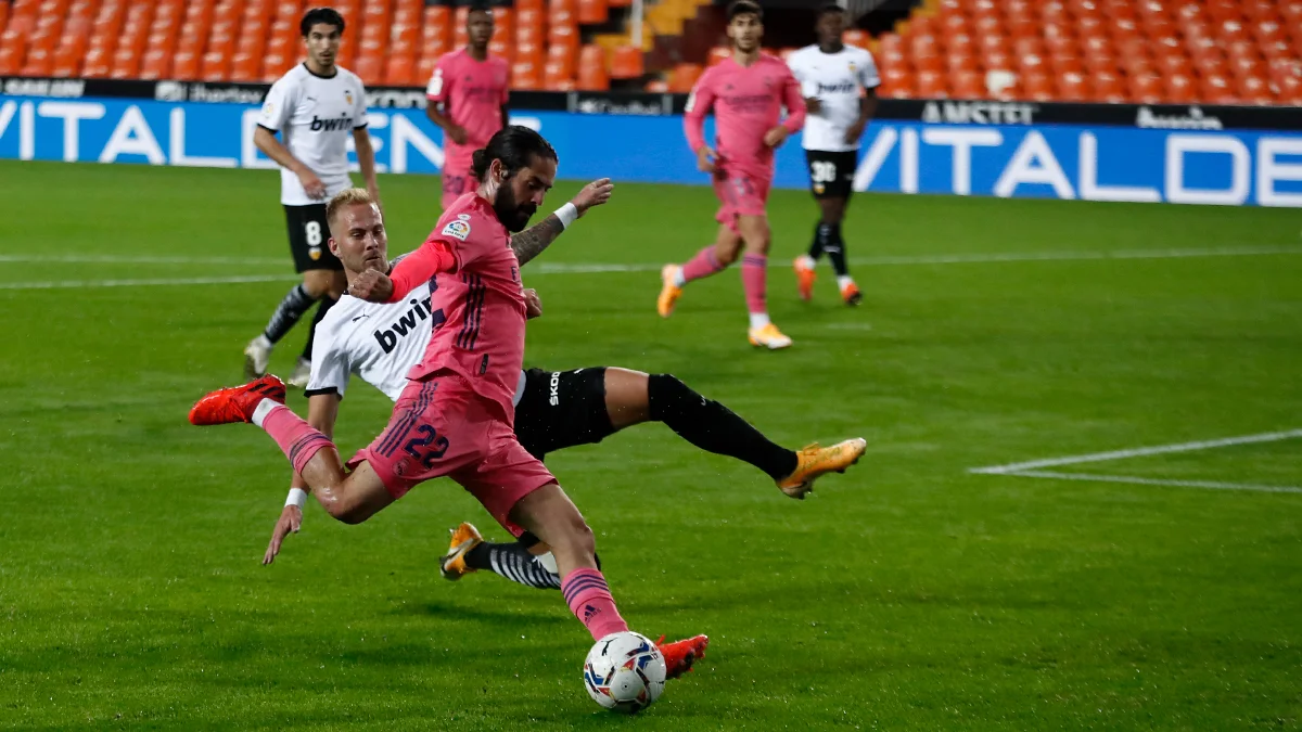 Программа 9-го тура закрывал поединок между Валенсией и Реалом на Месталье. Мадридцы перед стартовым свистком находились аж на четвёртой позиции с отставанием от первого в четыре очка, поэтому сегодня им была нужна только победа – правда, команда была ослаблена вспышкой коронавируса, из-за которой из состава выпали Каземиро и Азар. Наш Андрей Лунин остался на банке. "Летучие мыши" считались лёгким соперником, ведь в последних четырёх турах они ни разу не выиграли и при этом потерпели три поражения.