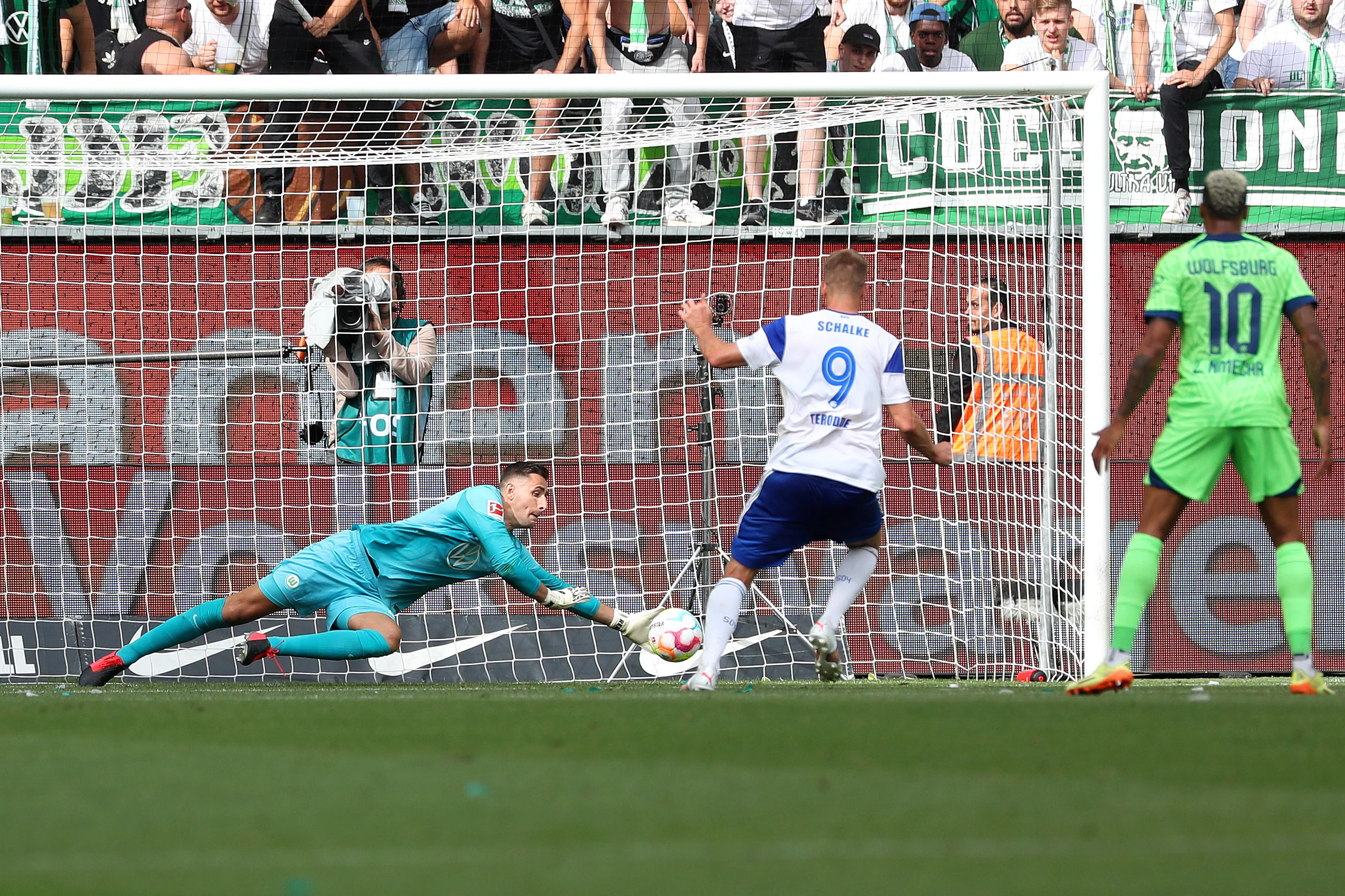 Довольно скучные 45 минут поединка между Вольфсбургом и Шальке были ознаменованы феерической концовкой первого тайма. Уже в добавленное время арбитр назначил пенальти в ворота "волков". Теродде не сумел перехитрить Кастелса, угадавшего направление полета мяча и в падении забравшего сферу. Однако судье показалось, что Кун в момент удара вышел слишком далеко из ворот и стандарт пришлось перебить. Все тот же Теродде бесхитростно пробил в тот же угол. Все тот же Кастелс в прыжке снова нейтрализовал угрозу. После перерыва Гилявоги вывел хозяев вперед, но неумолимый VAR зафиксировал офсайд.