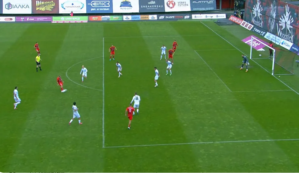 ЛНЗ, в свою очередь, пугал Авагимяном и стандартами. На 25-й минуте подачу Артура со штрафного замкнул Муравский, направив мяч в девятку – Кожухарь спас Верес! Еще через две минуты ситуация повторилась, только теперь Назарий сбрасывал на дальнюю под замыкание Драмбаеву (тот не успел).