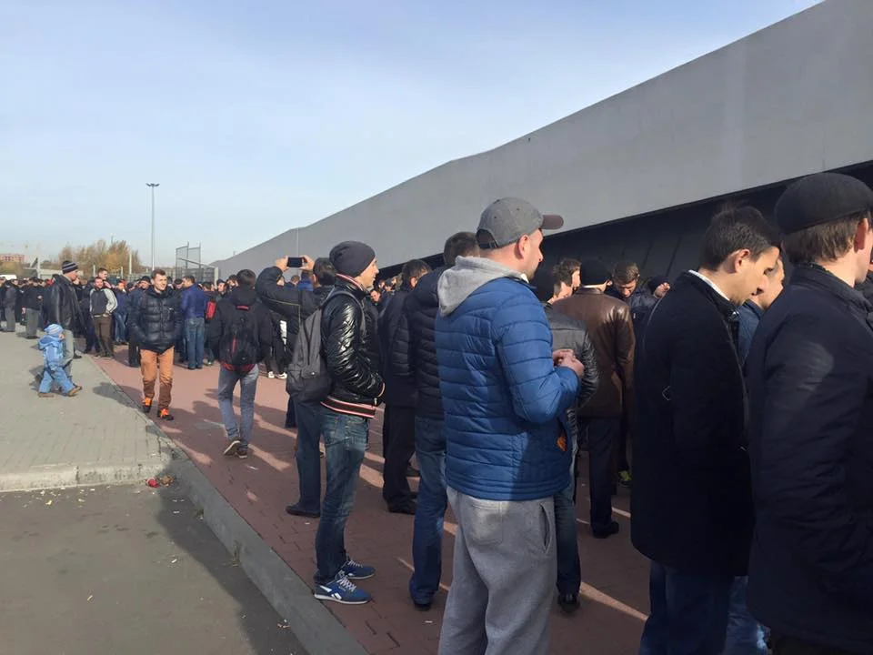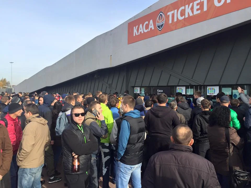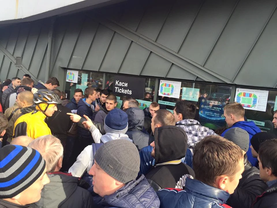 Фото с длинными очередями, которые образовались у касс "Арены Львов", опубликовал в своем фейсбуке журналист Виталий Крутяков.