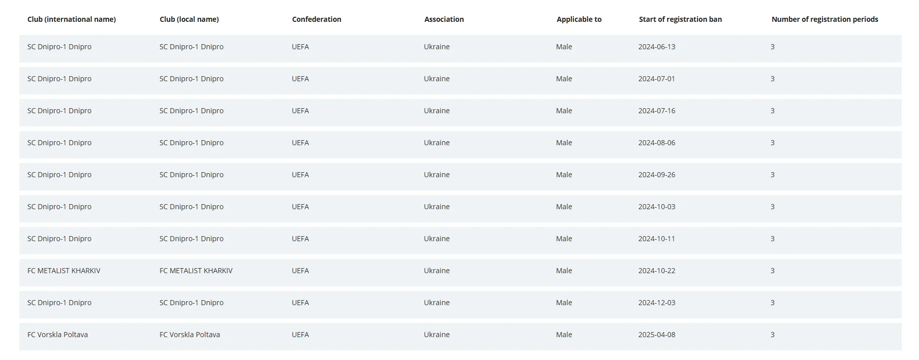 Ряд украинских клубов имеют проблемы с регистрацией игроков на новый сезон из-за трансферных банов.