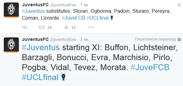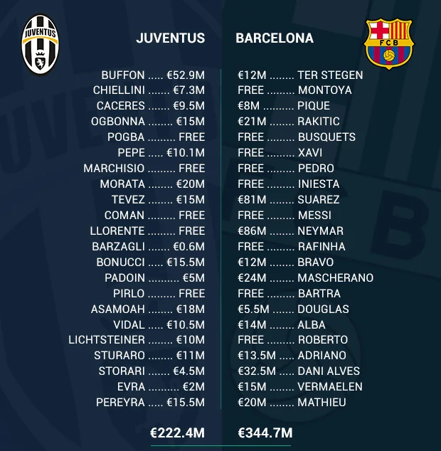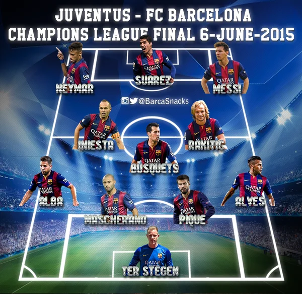 20:47. Лицо нынешнего финала со стартовых формаций "Ювентуса" и "Барселоны".