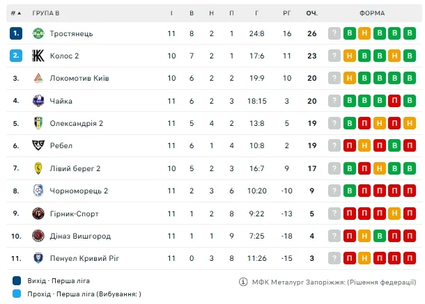 В группе B Тростянец перестрелял дома Горняк-Спорт (3:2). 4 гола были забиты еще в первом тайме встречи, а после перерыва гости смогли отквитать лишь один мяч. После 11-ти матчей Тростянец идет на первом месте.