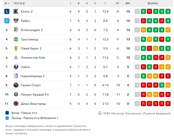 В группе B Колос-2 продолжил свой мощный старт сезона, одолев Ребел – 1:0. Теперь и у ковалевцев, и у киевлян одинаковое количество очков – по 15. Правда у Колоса-2 есть матч в запасе, поэтому они могут единолично возглавить таблицу после следующего матча.