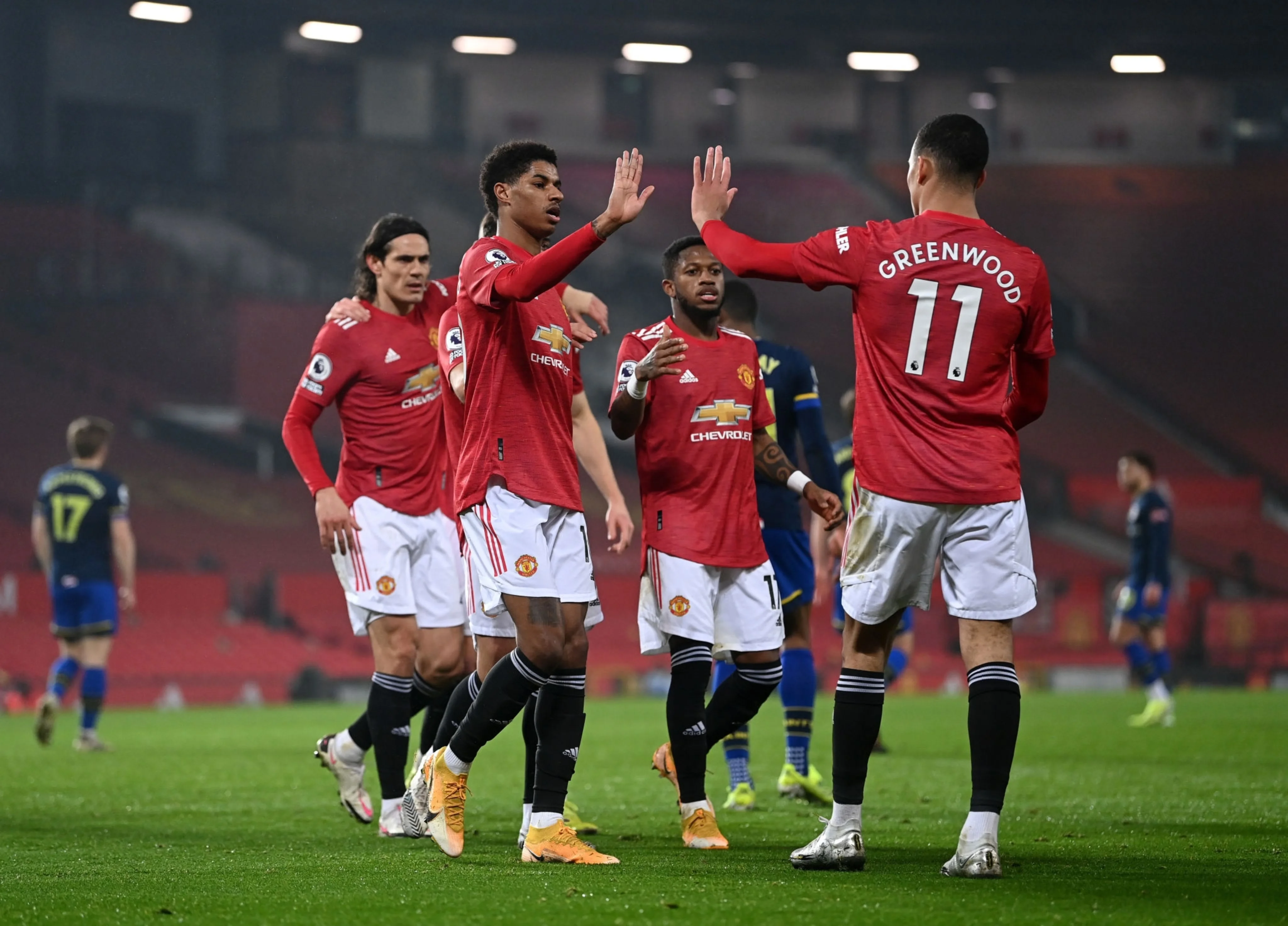 В начале второй половины встречи "святым" удалось отквитать один гол, однако после просмотра VAR на предмет офсайда он был отменен. На 70-й Марсьяль получил навесную передачу в штрафную, обработал мяч и пробил мимо голкипера – 5 0. После этого защита гостей окончательно капитулировал и через минуту Мактоминай забил еще один. Под занавес встречи Беднарек получил красную и гости остались вдевятером. Рефери еще и назначил пенальти, который без особых проблем реализовал Фернандеш. В компенсированное время "дьяволы" забили еще два и матч закончился со счетом позорным счетом 9:0.
