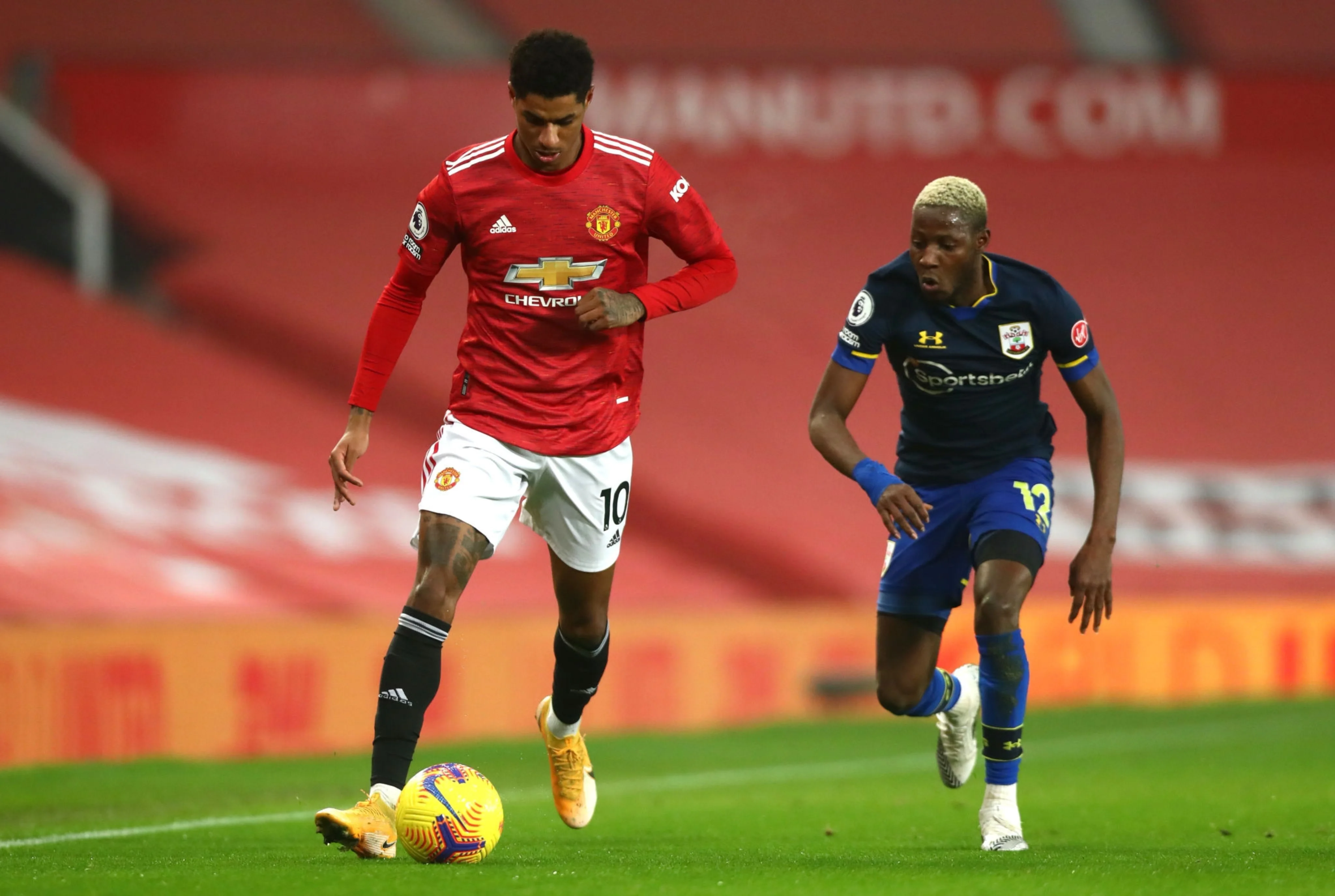 Манчестер Юнайтед в родных стенах принимал Саутгемптон. Уже на 2-й минуте матча "святые" остались в меньшинстве – Янкевиц грубо сфолил и получил за это прямую красную карточку. Манкунианцы сразу пошли в атаку и на 18-й счет открыл Ван Биссака. В середине тайма преимущество увеличил Рашфорд, а чуть позже Беднарек срезал мяч в собственные ворота – 3:0. "Дьяволы" не собирались останавливаться на достигнутом и под занавес тайма еще один положил Кавани.
