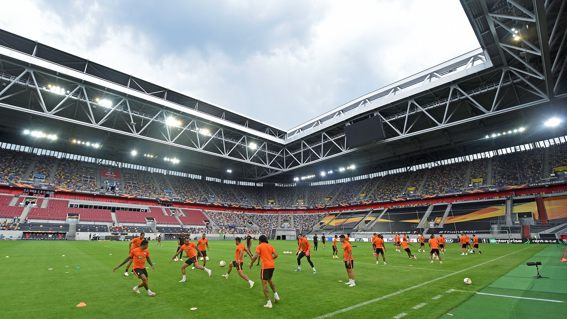Напередодні дуелі з Інтером, у неділю, "гірники" випробували поле на стадіоні місцевої Фортуни Merkur Spiel-Arena, яка розташована на березі Рейну та вміщує 54,6 тис. глядачів. До речі, на цьому стадіоні, який два роки тому ще мав назву Esprit Arena, провів три поєдинки Володимир Кличко. До речі, усі півфіналісти базуються у Дюссельдорфі, хоча і один із півфіналів, і майбутній фінал гратимуть у Кельні.