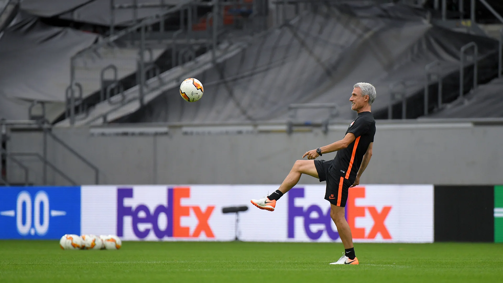 Перші 15 хвилин тренування Шахтаря на арені сьогоднішньої півфінальної битви Ліги Європи традиційно були відкритими для ЗМІ. Як завжди, команда очікувано не демонструвала в цей час якісь тактичні напрацювання. Гравці у невеликих групах утримували м'яч у повітрі за допомогою лише двох дотиків. До речі, пограв бавитися в цю гру з одним зі своїх помічників і Луїш Каштру.