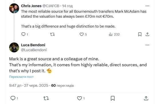 ПСЖ, был проинформирован о позиции "вишен", так же как другие клубы АПЛ, которые захотят вступить в переговоры. Интересно, что под постом Бендони в Х, появился комментарий от другого пользователя, который ссылаясь на журналиста Марка МакАдама заявил, что Борнмут оценивает Забарного в 70 млн фунтов стерлингов, а не евро, что является весомой разницей. Однако Бендони в ответ заверил, что его информация пришла из надежных источников.