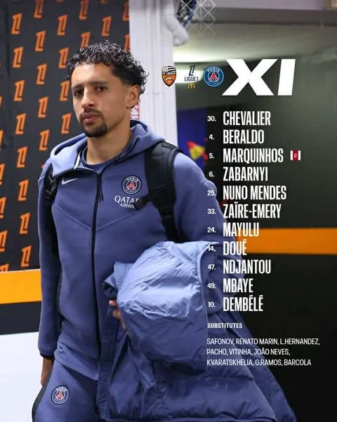Матч Лорьян – ПСЖ начнется в 20:00 по киевскому времени. Французские СМИ прогнозировали, что Забарный останется в запасе, а вместо него выйдет Маркиньос, однако Луис Энрике удивил всех, выставив капитана парижан вместе с Забарным и Лукасом Беральдо.