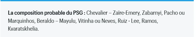 Издание Le Parisien прогнозирует, что украинский защитник выйдет в стартовом составе ПСЖ на игру с Лансом. Ожидается, что Забарный будет играть в паре с Пачо или Маркиньосом. Впрочем, вероятно Маркиньоса, а также Ашрафа Хакими "поберегут" на матчи Лиги чемпионов.