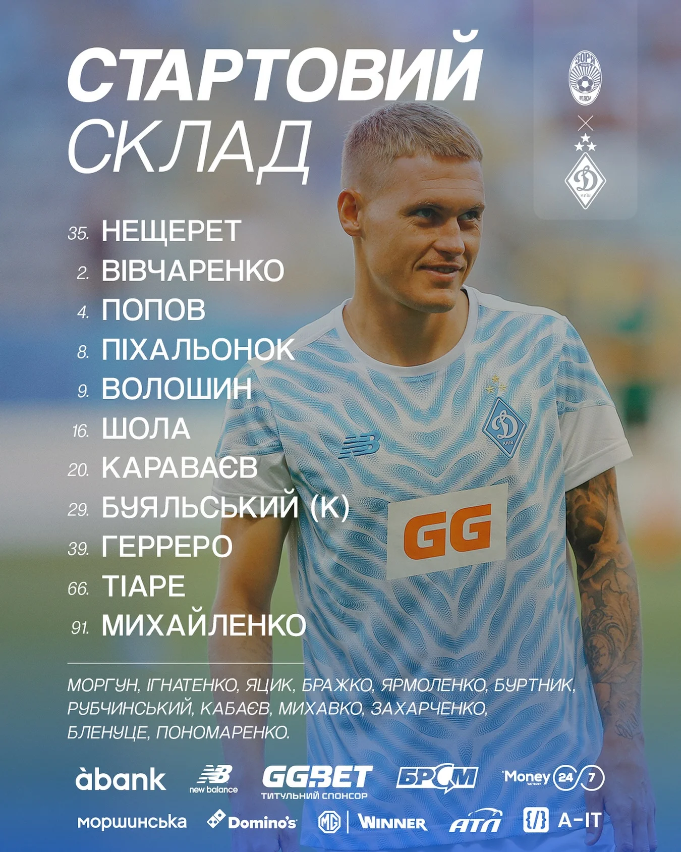 Динамо: Нещерет – Караваев, Попов, Тиаре, Вивчаренко – Михайленко – Волошин, Пихаленок, Буяльский (к), Шола – Герреро.