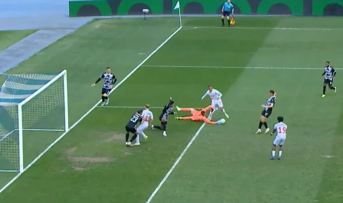 На подборе оказался Фабрисиу, который мощно пробил с 11-ти метров. Выше ворот!