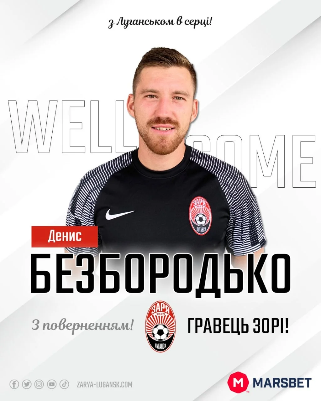 Украинский нападающий Денис Безбородько продолжит карьеру в Заре, сообщает официальный сайт "мужиков".