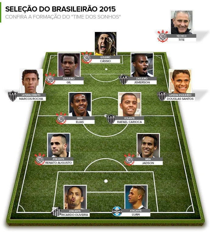 Защитники: Маркос Роша ("Атлетико Минейро"), Жил ("Коринтианс"), Жемерсон ("Атлетико Минейро"), Дуглас Сантос ("Атлетико Минейро")