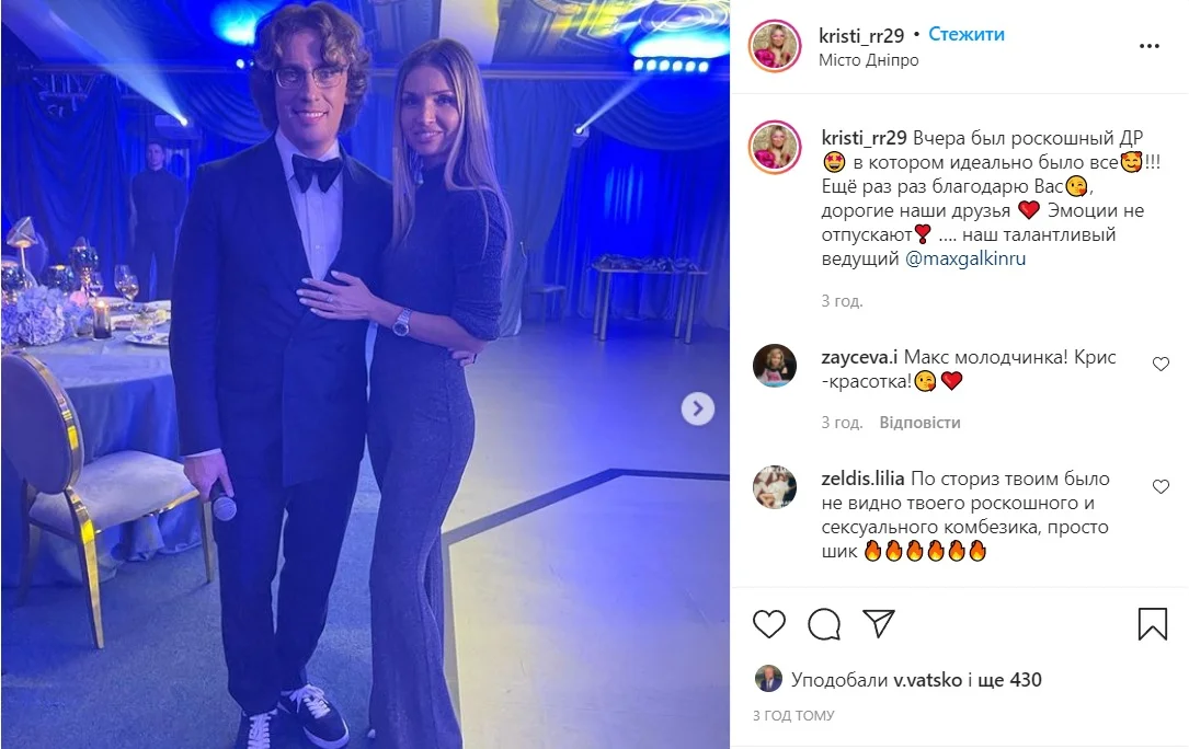 Накануне Кристина посетила день рождения, на котором выступали звезды украинской и российской эстрады: Ирина Билык, Вера Брежнева, Артур Пиражков и Любовь Успенская. Дирижером мероприятия был Максим Галкин.