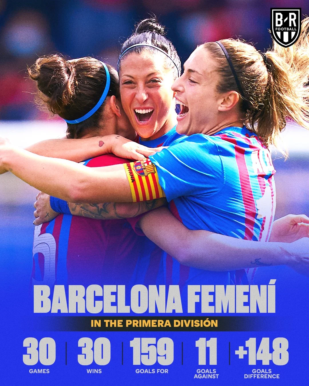 Барселона досрочно стала чемпионом Испании в женском футболе, а сегодня завершила кампанию с идеальными показателями. 30 матчей – 30 побед. 159 забитых голов и 11 пропущенных.
