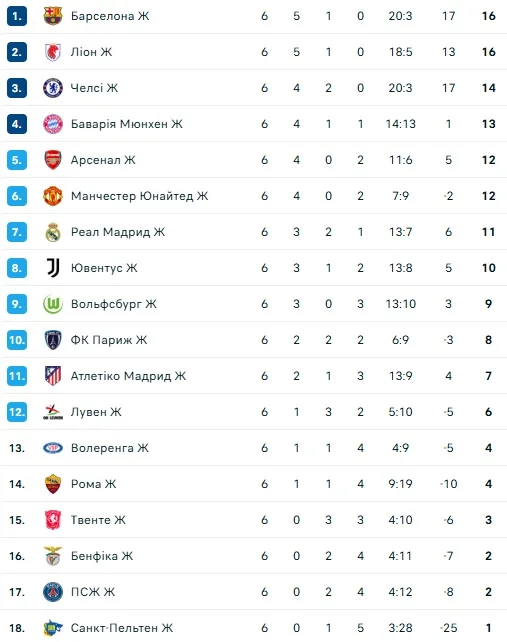 Женская ЛЧ, 6-й тур