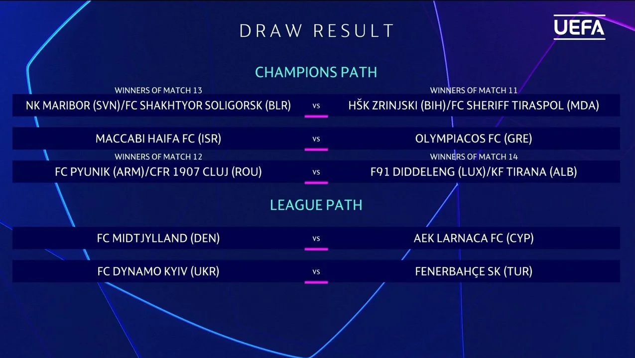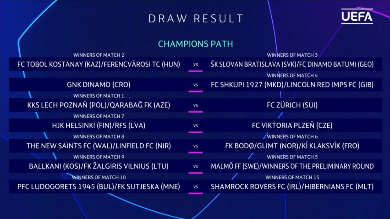 Результаты жеребьевки 2-го квалификационного раунда Лиги чемпионов – Динамо против 19-кратного чемпиона, нефарт поляков