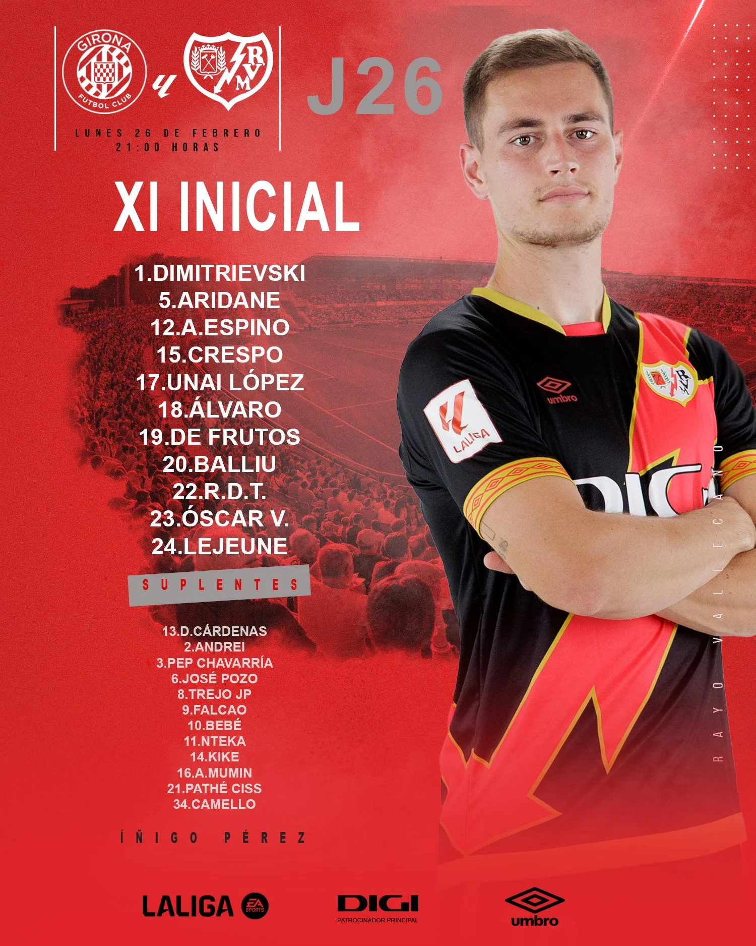 Виктор Цыганков и Артем Довбик играют в матче 26-го тура Ла Лиги Жирона – Райо Вальекано 26 февраля. Стартовые составы и ссылка на онлайн-трансляцию игры – в этой новости на "Футбол 24".
