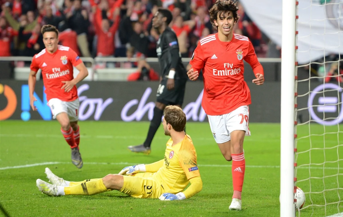 В первом четвертьфинальном матче Лиги Европы между Бенфикой и Айнтрахтом 19-летний хавбек португальской команды Жоау Фелиш оформил хет-трик и отдал результативную передачу.