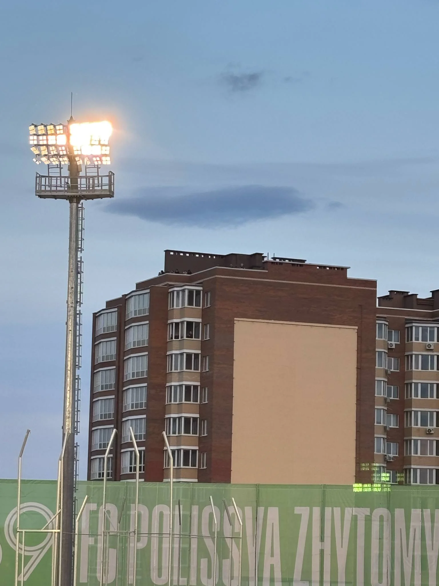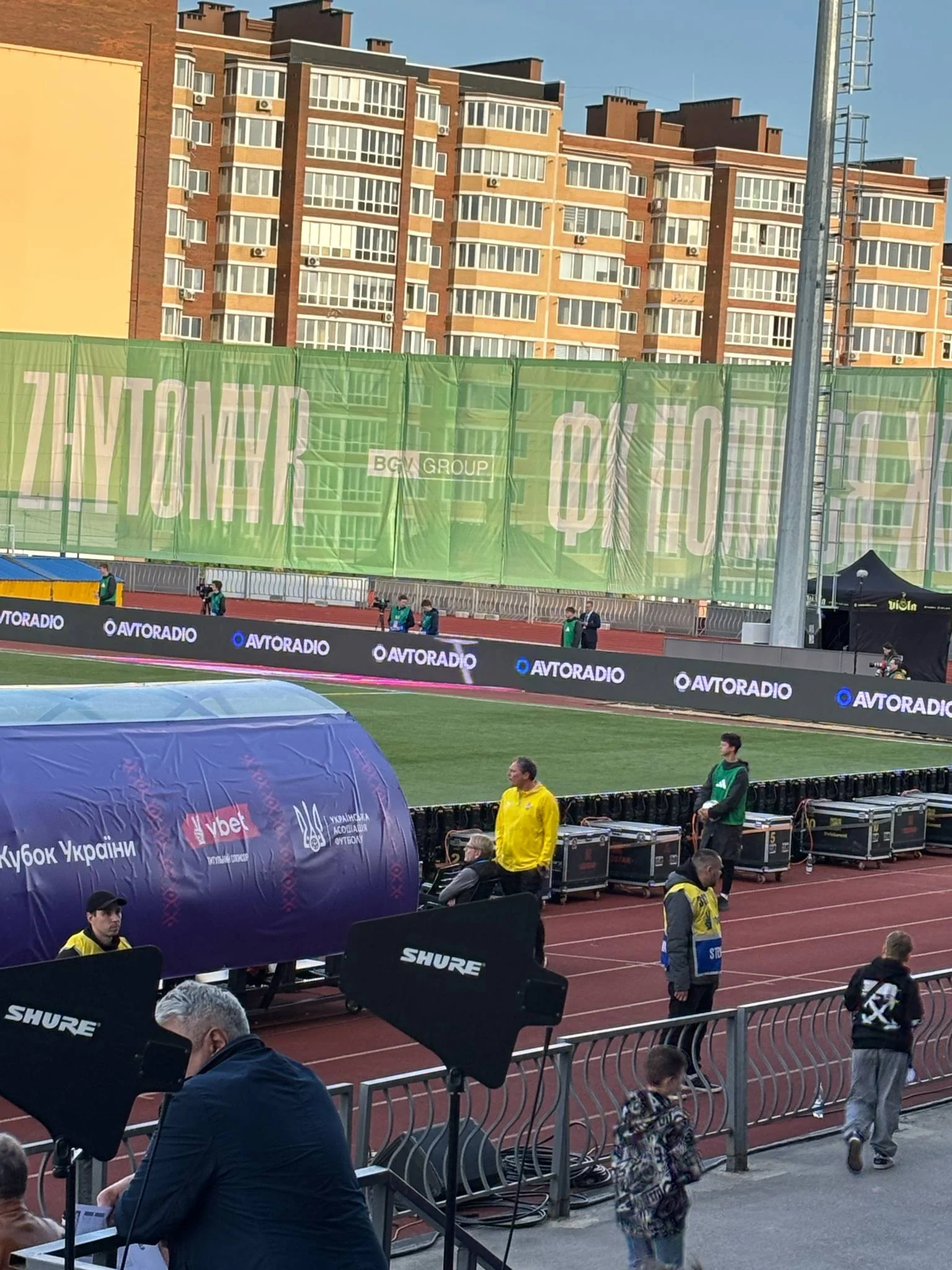 При вʼїзді в місто одразу відчувалося, що тут відбудеться футбольна подія. Перше, що я побачила – великий білборд із анонсом фіналу. Далі промайнув ще один, тільки цього разу адресований місцевому Поліссю, із відомим лозунгом "Сила в зграї". Дорогою зустріла мікроавтобус житомирської команди, який роз'їжджав затишними вуличками. Весняні зелені барви, маленькі зелені парканчики, чи навіть зелений тролейбус. Усе немов промовляє: "Тут живе Полісся". Що ж, фінал Кубка України відбудеться у футбольному місті.