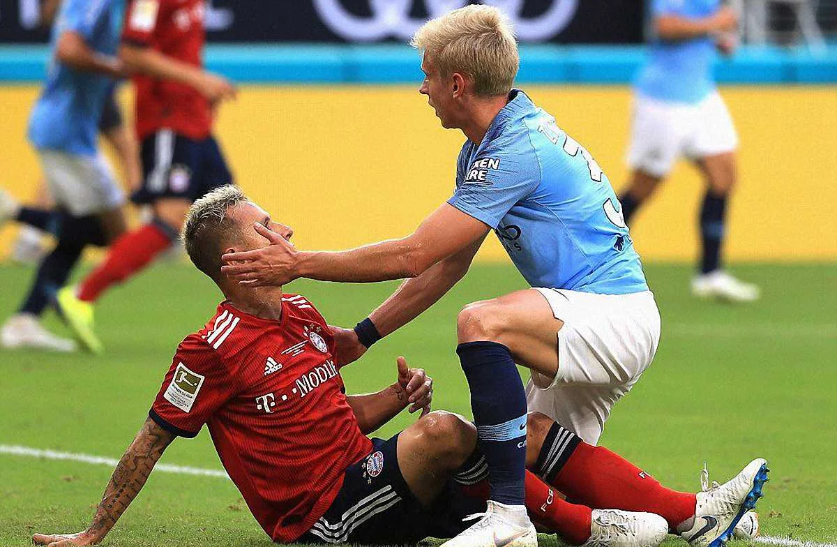 Александр Зинченко в матче Бавария - Манчестер Сити
