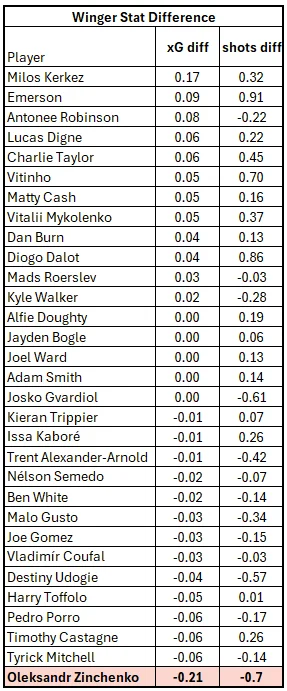 Знову ж таки, не можна опиратися лише на ці цифри, бо крайній захисник обороняється не тільки проти вінгера, а вінгера тримає не тільки крайній захисник. Однак деякі висновки напрошуються.