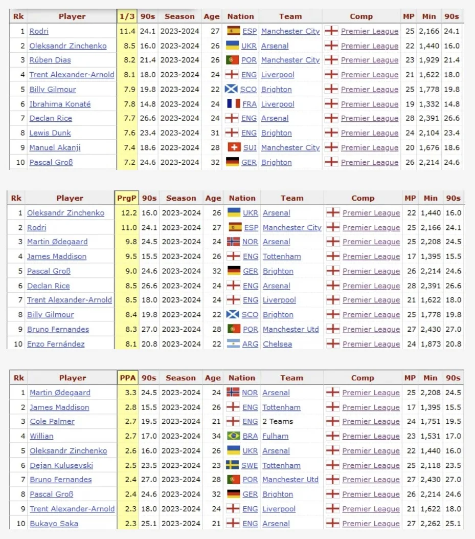 Якщо показники українця порівняти зі статистикою інших гравців АПЛ, виникає легкий шок. Тільки Родрі частіше за нього пасує у фінальну третину. За передачами з просуванням він взагалі найкращий. А якщо взяти передачі з гри у чужий штрафний майданчик, то Олександр четвертий серед всіх і перший серед захисників.