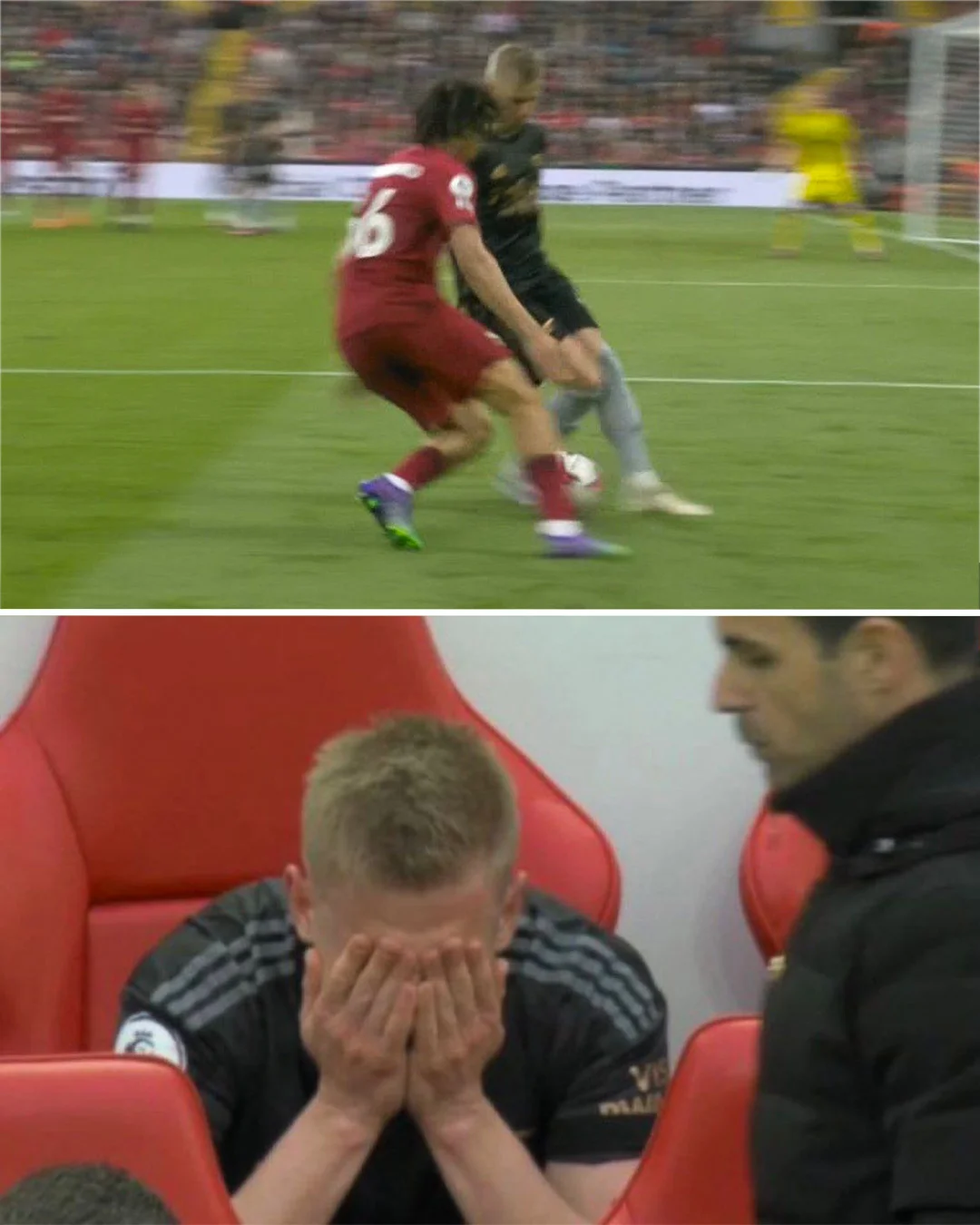 Зінченко дуже емоційно відреагував на свою помилку та заміну у матчі проти Ліверпуля: вірусні кадри
