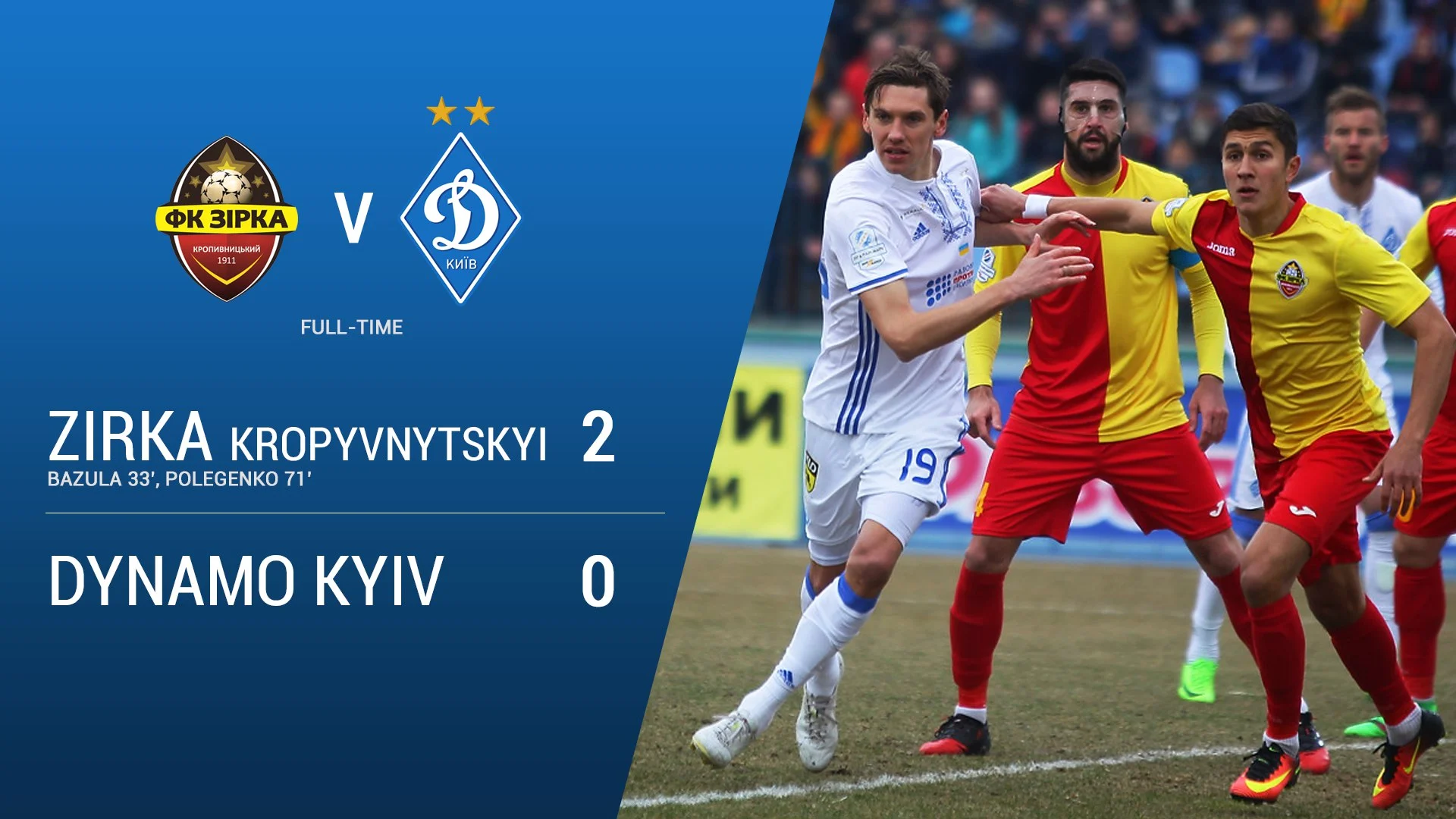 "Зирка" – "Динамо" – 2:0. Видео голов и обзор матча