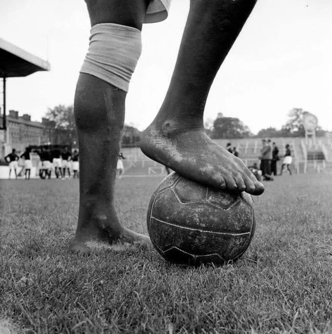 20. Босі ноги нігерійця Джастіна Онвудіве. Більшість африканських футболістів грали без бутсів під час свого турне Британією у 1949 році.