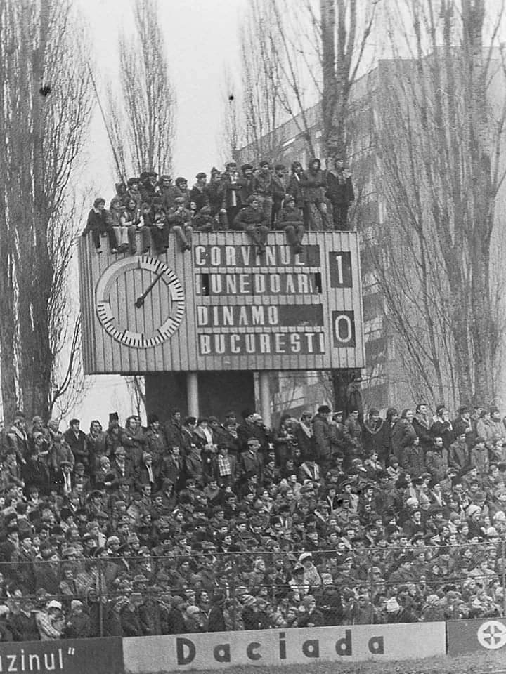25. Корвінул, клуб із міста Хунедоара, веде в рахунку проти бухарестського Динамо. Похмура епоха пізнього диктатора Чаушеску.