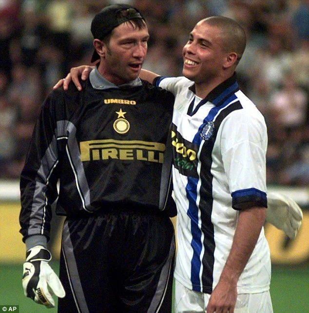 17. Наступного сезону "Зубастик" поповнив лави міланського Інтера. На фото – поруч із клубною легендою, голкіпером Вальтером Дзенгою.