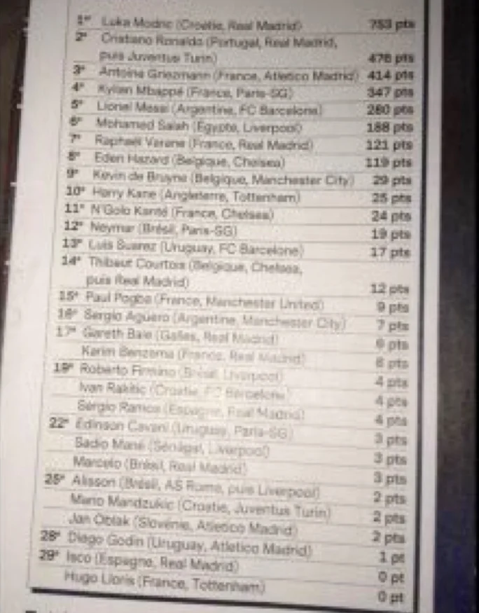 "Золотой мяч-2018": результаты голосования: