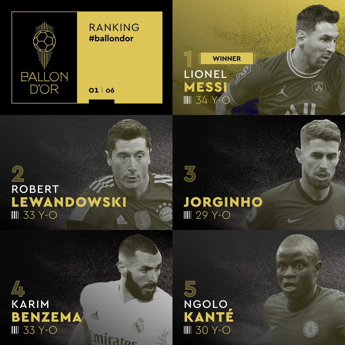 "Золотой мяч" этого года стал седьмым для Месси. Ранее он получил титул лучшего в 2009, 2010, 2011, 2012, 2015 и 2019 годах.