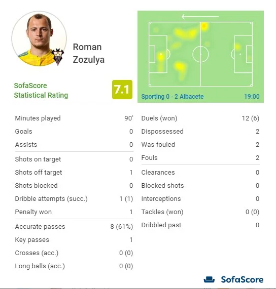 Роман Зозуля з Альбасете грав проти Спортінга в матчі 40-го туру іспанської Сегунди. Команда українця перемогла та зберегла шанси на прямий вихід у Прімеру.