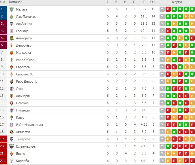Лучшие старты Альбасете в истории после 6-ти туров: